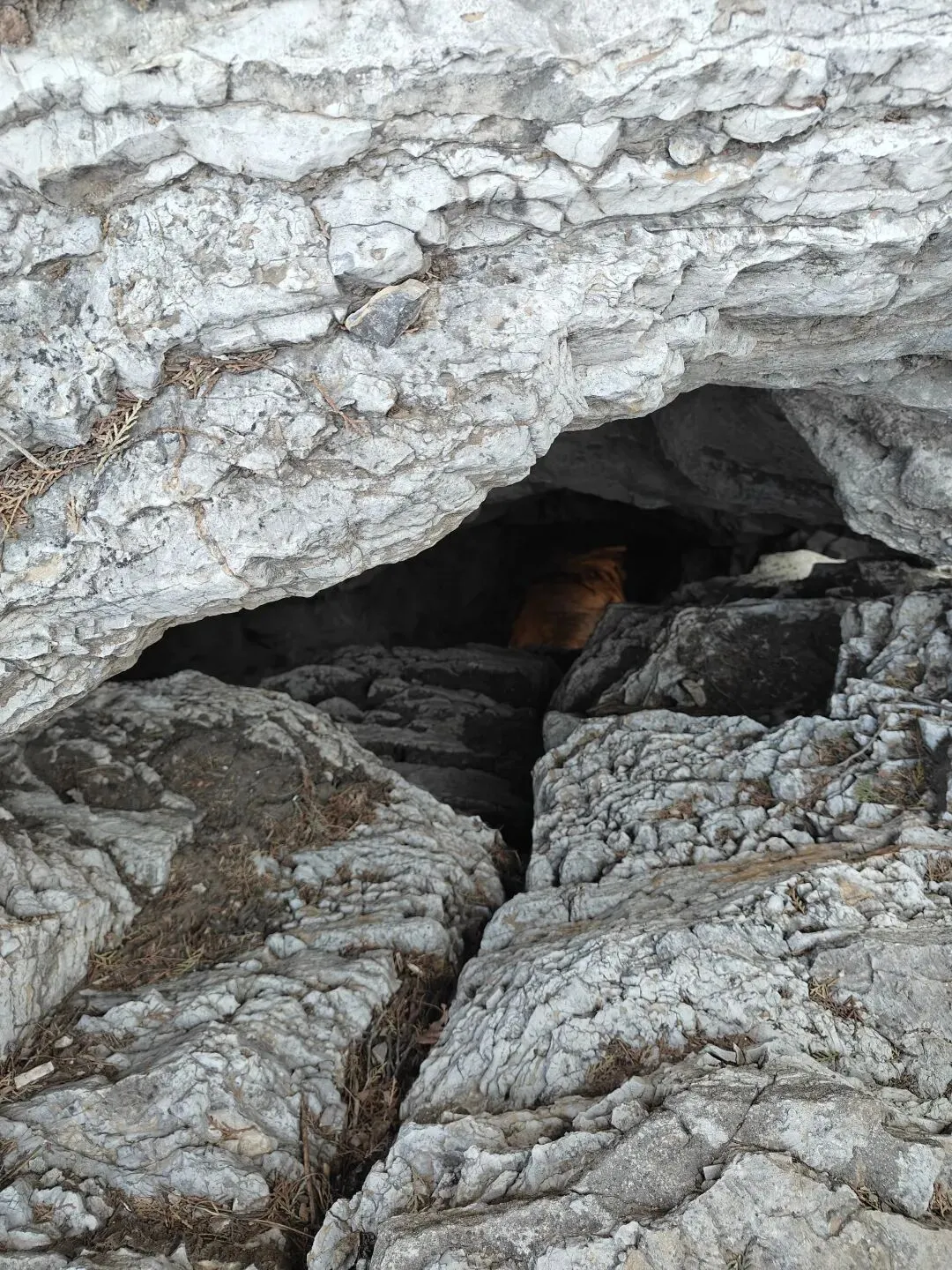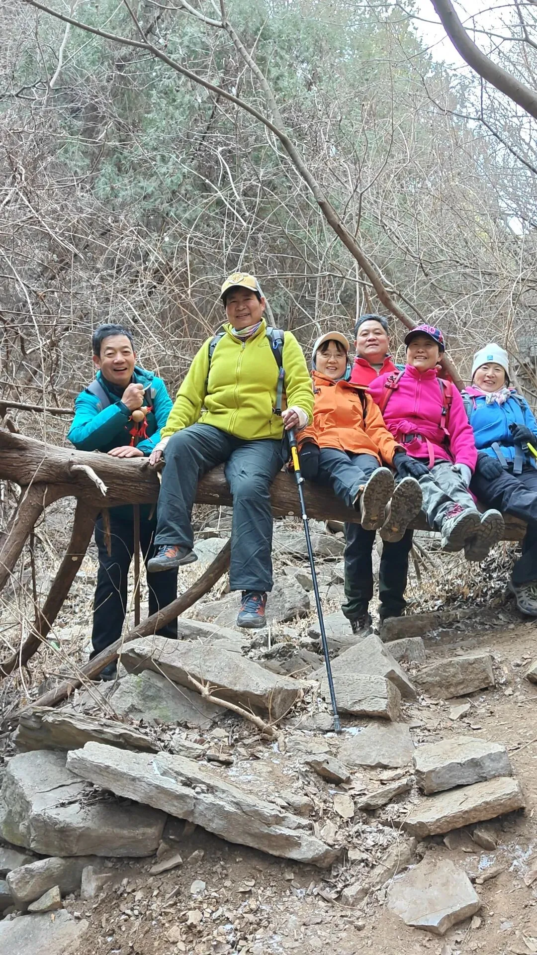 继续向东北方向穿越,经过一段防火道,穿过一片枯草地和松树林,大约一小时左右,来到了又一打卡地----八仙桌