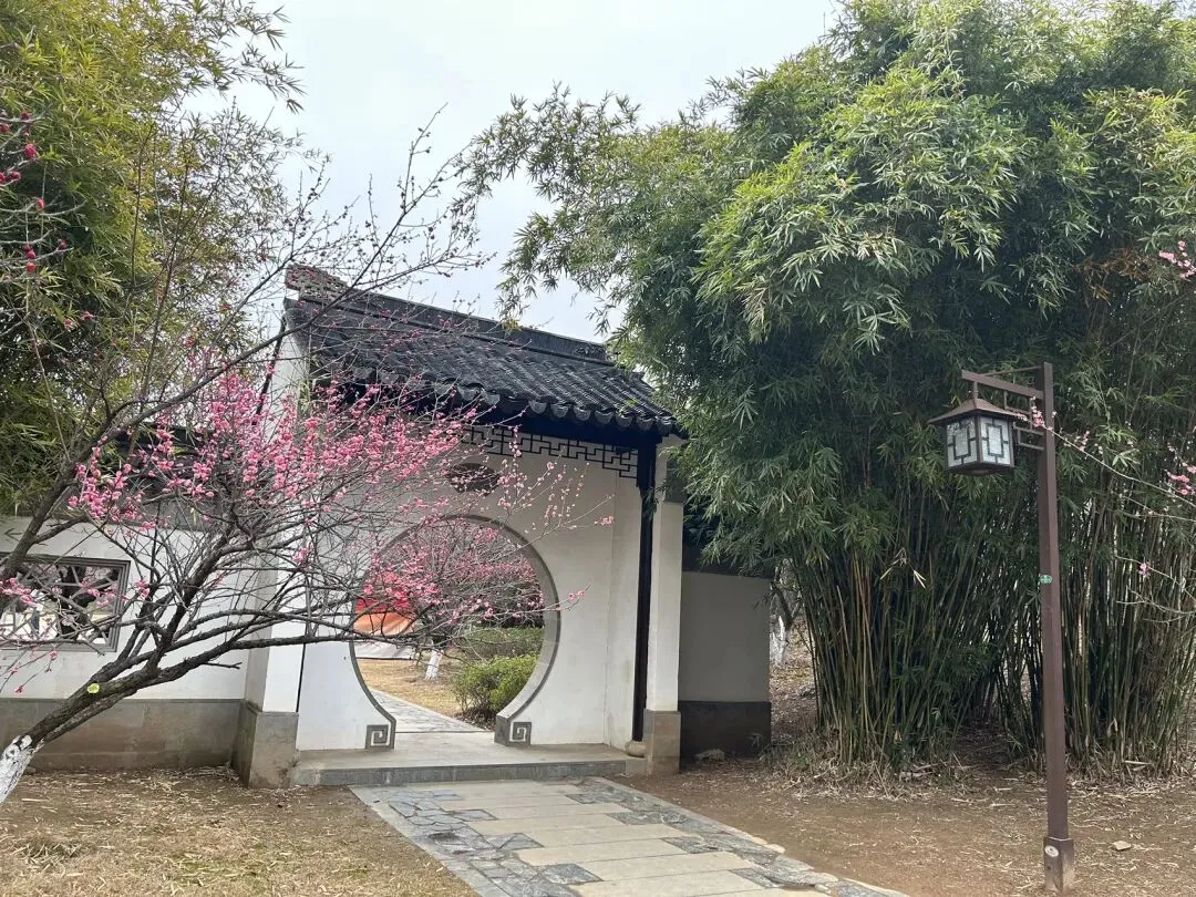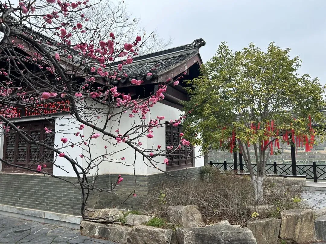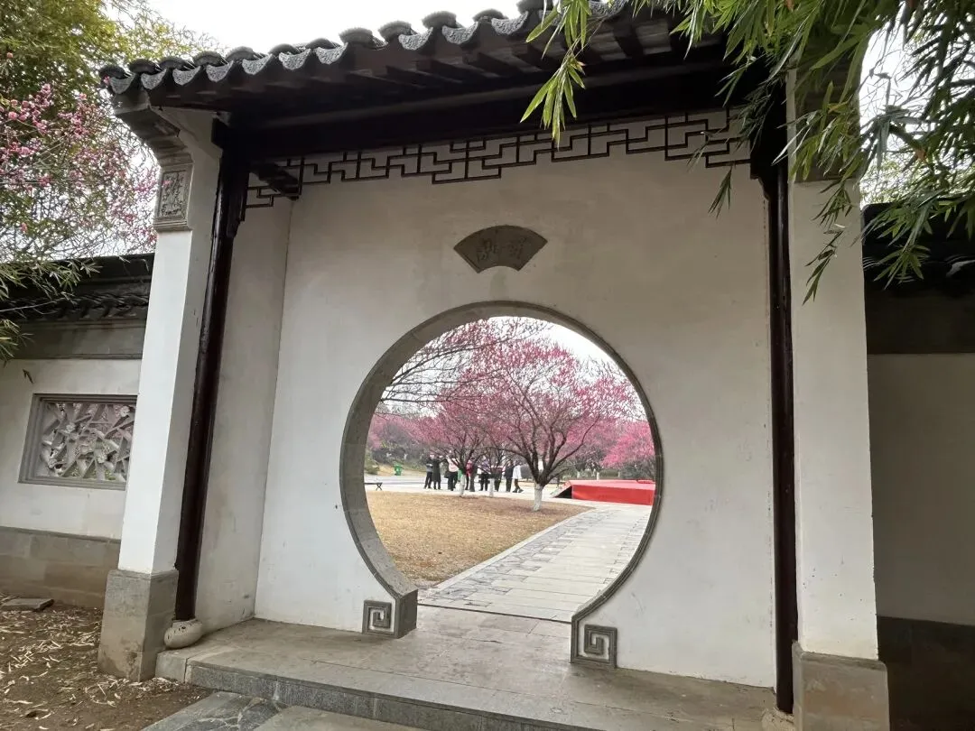 2. 必拍机位:① 湖边低角度拍花+倒影;② 月洞门/九曲桥作框架构图;③ 诗词碑旁梅花特写;④ 高处俯拍整片梅林