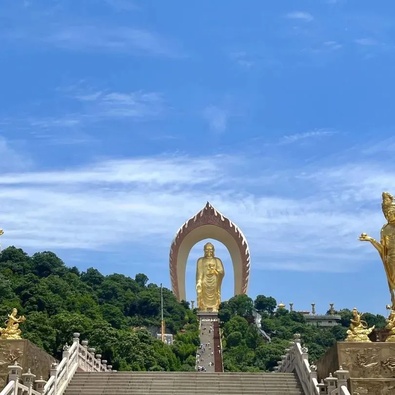 金色佛身与青山相映