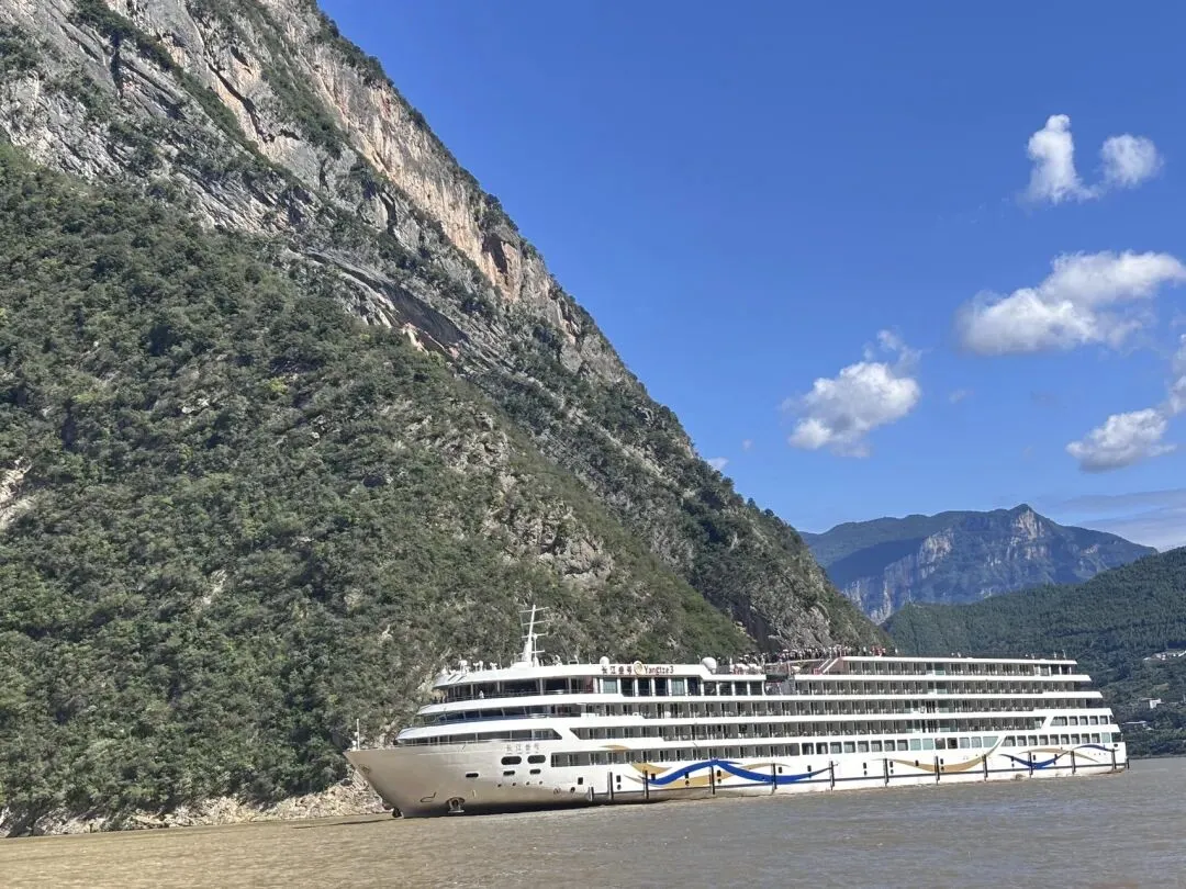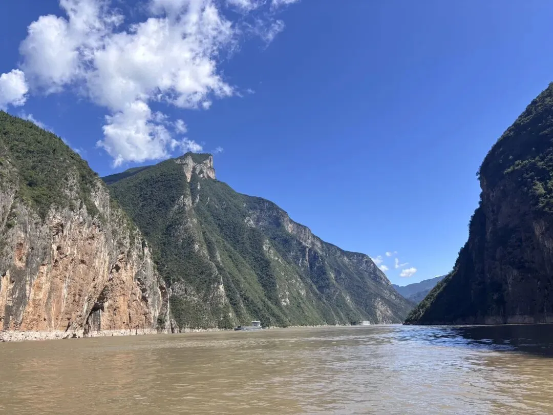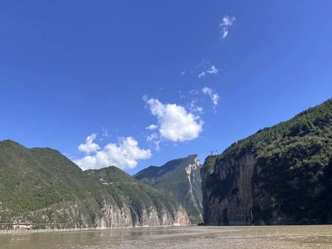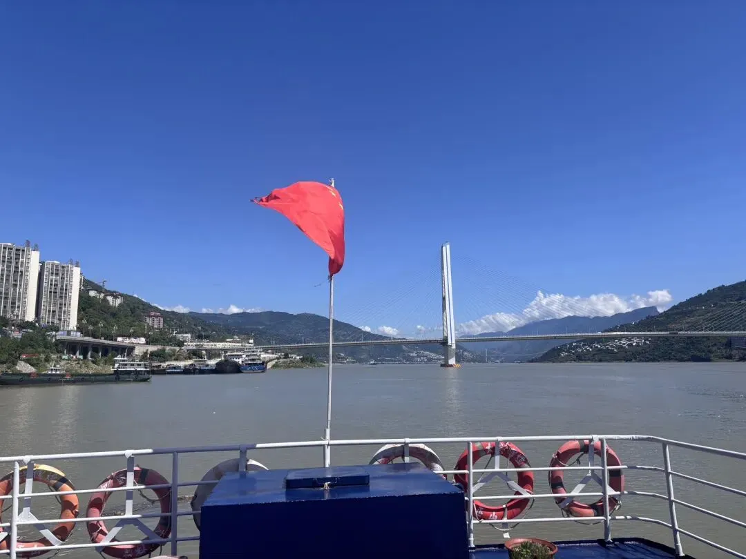 我乘坐的这趟是奉节(夔门)到巫山段,奉节上船,有两个班次:早上8点,下午1点。总航程3个半小时,票价40元,上船买票。抖音上也有一些号在卖票,但酒店和船老大都不推荐。之前我有点担心票子会不会很抢手,到时候会没位置,酒店前台让我放宽心。 上船之前,其实有点怕晕船,因为到上海的长江渡轮有时候风浪非常大,船上下晃的很厉害。跟酒店老板聊天,他大笑,说一点风浪也不会有,这段长江就是一个超大的水库。 的确,小红船船不大,行驶的却非常稳,长江上风平浪静。三个多小时的航程,可以坐在船头和船老大聊天,也可以坐在船尾的长条凳上吃瓜子,晒太阳。船舱内的位置都没坐满,空的很。一路看老板娘直播,也买了农民挑上船的新鲜的无花果吃。 风景非常好,有诗为证:中巴之东巴东山,江水开辟流其间。白帝高为三峡镇,瞿塘险过百牢关。 最有名当然是这句:朝辞白帝彩云间,千里江陵一日还。一路上从夔门经过瞿塘峡,到巫峡,体会了一次李白当年行舟的畅意。 🦀 注意 这段航程是看不到悬棺的🛳️ 一路看到了很多大游轮,坐游轮游三峡也是一个很好的选择