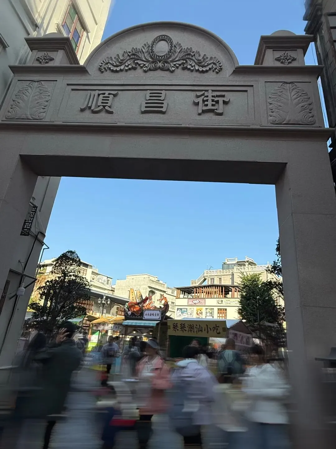 牌坊下的小吃摊前,游客们捧着潮汕小吃边走边吃,烟火气十足。牛肉丸、蚝烙、肠粉……这些我们吃到腻的味道,现在成了别人口中的“舌尖上的汕头”。