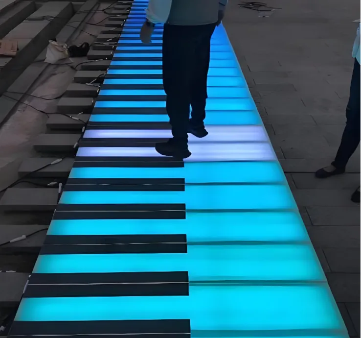 灯光交响乐:在“乐享城”区,踩踏地面钢琴键,控制头顶灯光旋律变化