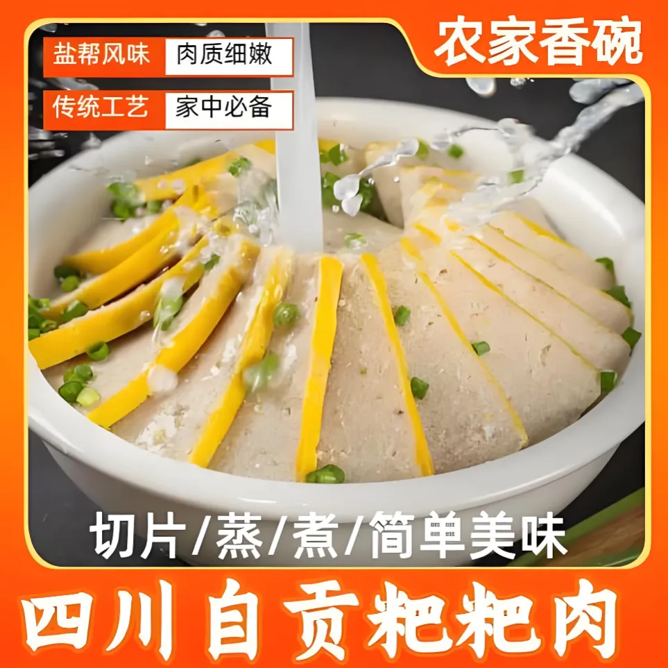 粑粑肉 (头碗):宴席“九大碗”之首,象征团圆美满,是春节宴席的标志性菜品,是传统家宴或老字号餐厅代表自贡名菜系。
