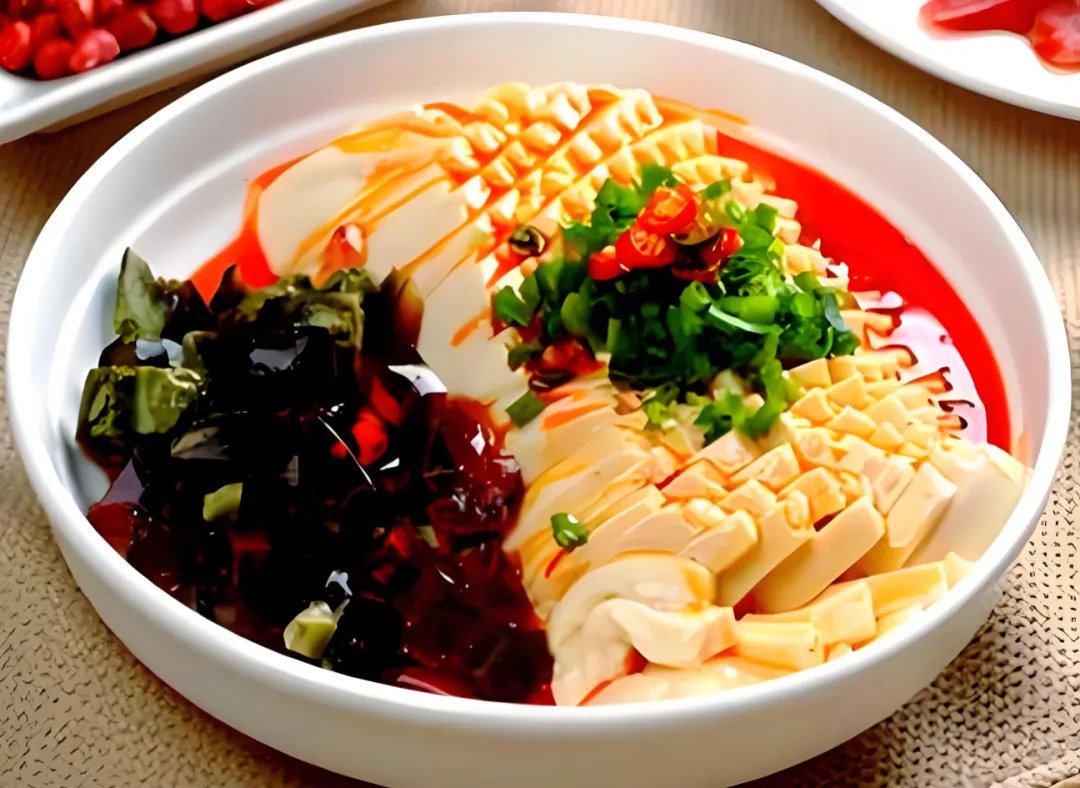 富顺豆花:蘸水是灵魂。用糍粑海椒制作的蘸水,辣中回甘,像极了爱情的味道——初尝热烈,回味绵长。