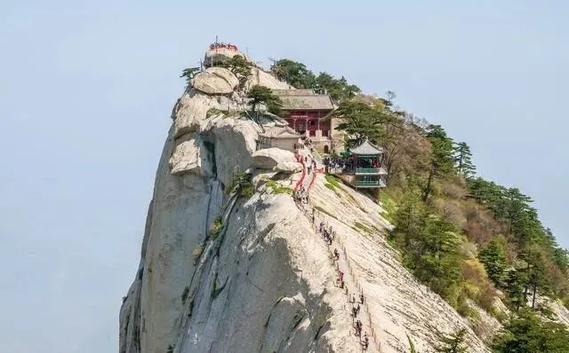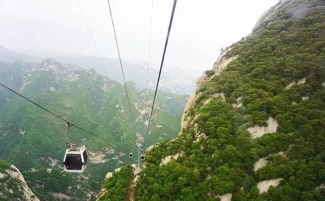 西峰索道是真的猛 , 缆绳悬在两座山中间 , 落差755米 , 恐高的人直接闭眼吧...东峰的鹞子翻身 , 人得左右翻着身子才能过去。 还有长空栈道 , 700多年历史了 , 30厘米宽的木板挂在悬崖上 , 站上去脚底发麻。
