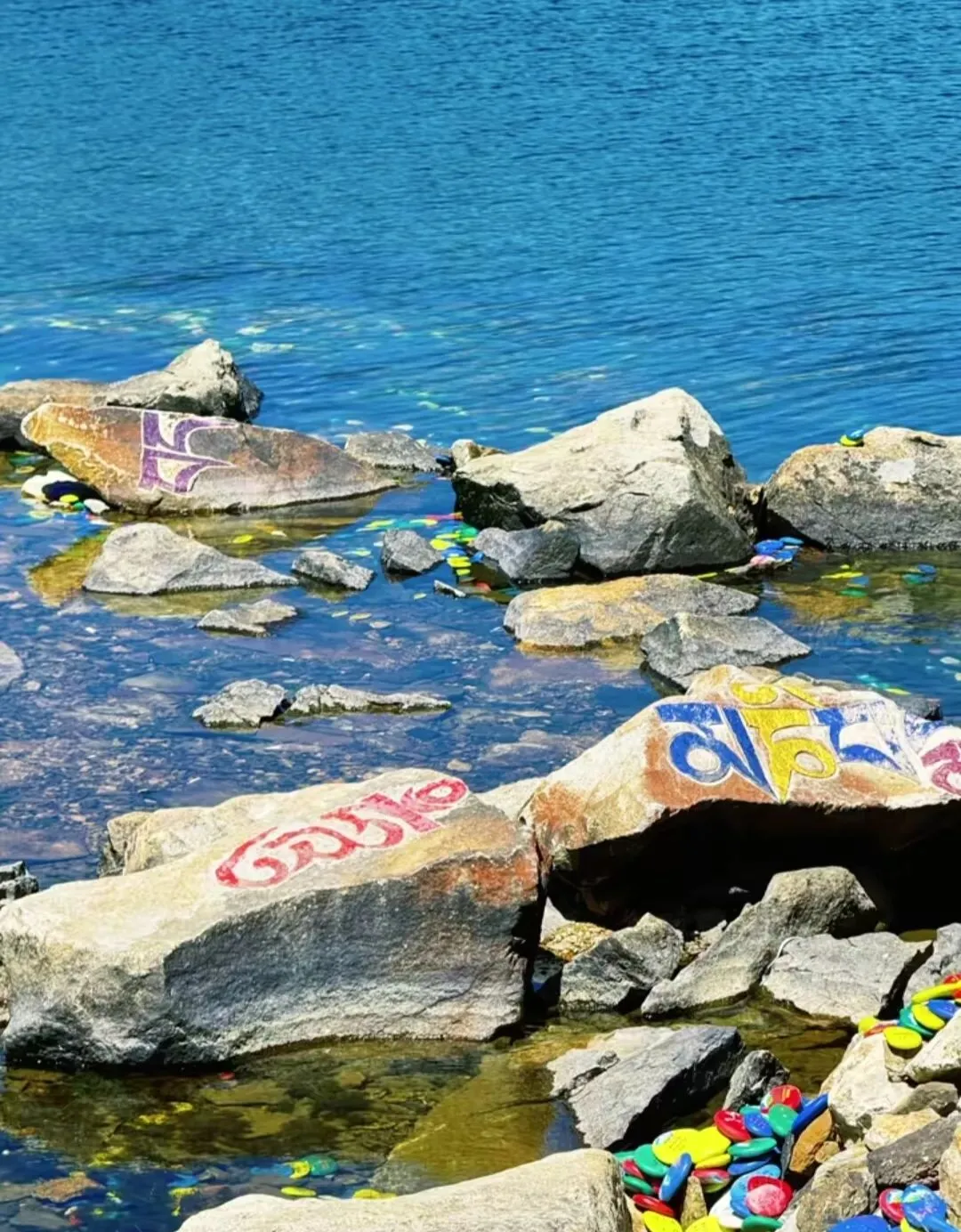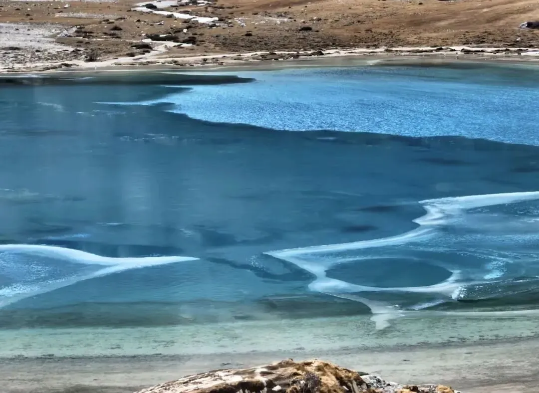 高原圣湖:牛奶海因湖水呈乳白色而得名,四周雪山环绕,湖水在阳光照射下泛着粼粼波光;五色海因光线折射呈现蓝、绿、黄、白、红五种颜色,传说能“反照前世今生”,是藏族同胞心中的圣湖。