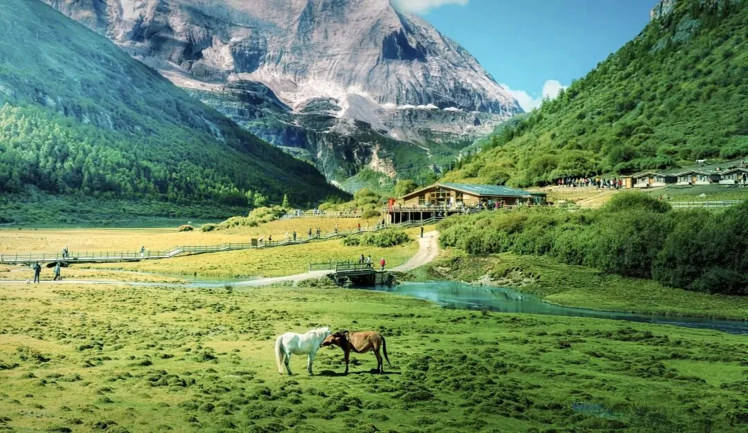 洛绒牛场:海拔4150米的高山草甸,是三座神山的最佳观赏点,夏季野花烂漫,牦牛成群,远处雪山与近处草甸构成一幅绝美画卷,也是电影《从你的全世界路过》的取景地。