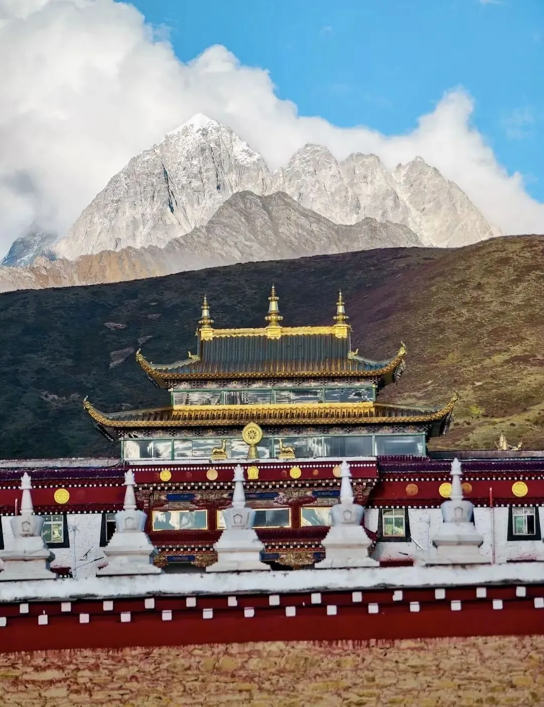 长青春科尔寺:藏传佛教格鲁派六大寺院之一,始建于1580年,寺庙建筑宏伟壮观,寺内供奉着众多佛像与经卷,是康巴地区的宗教中心。
