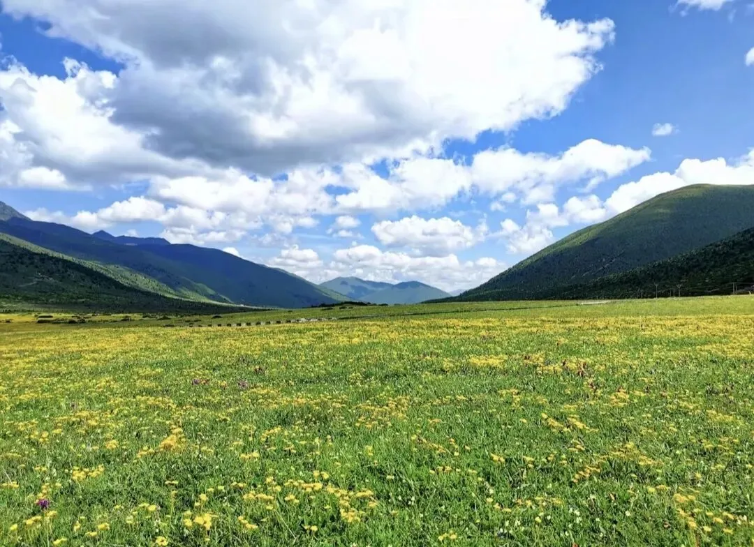 花海草原(草甸):夏季(6月-8月),草原上开满格桑花、野花,形成一片金色的海洋,与远处的雪山构成绝美画卷,是拍照打卡的热门地点。