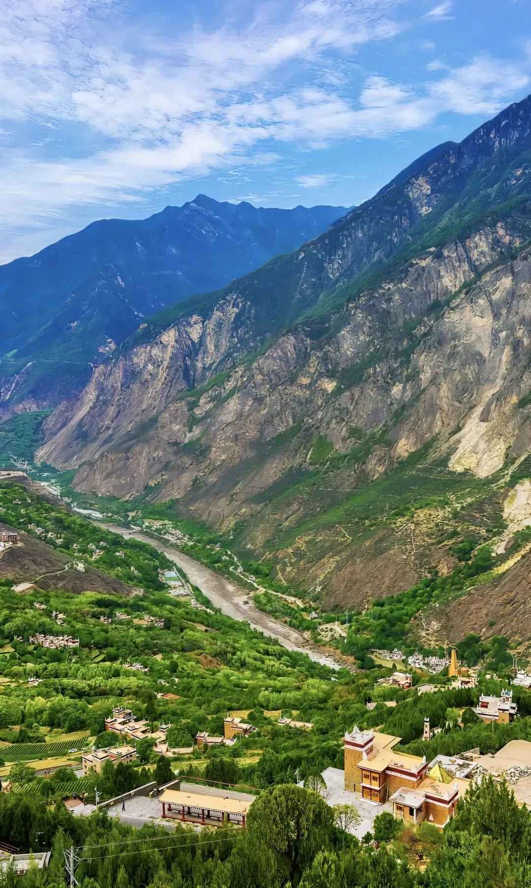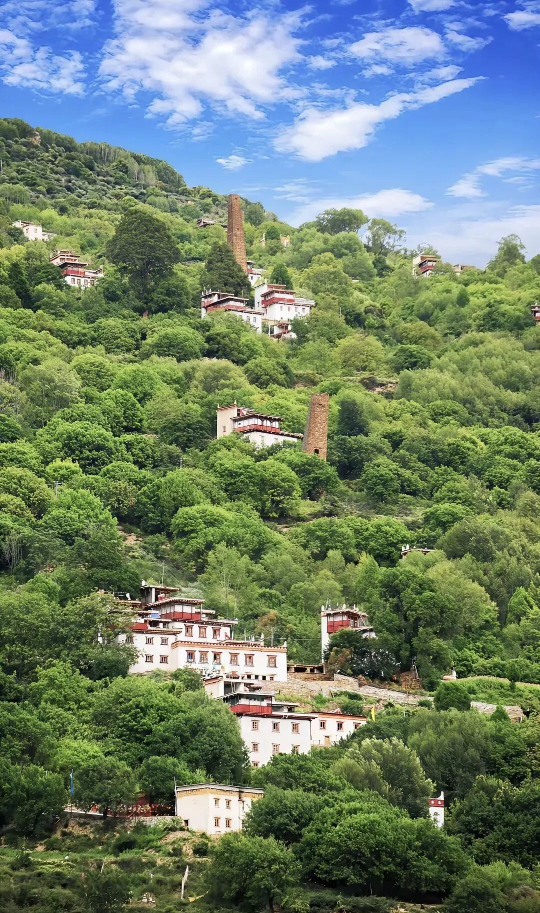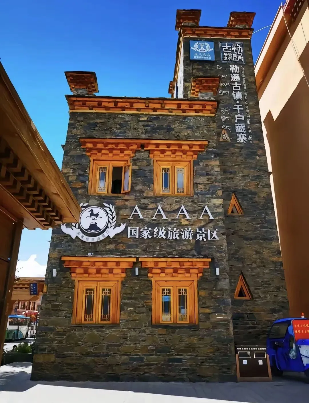 千户藏寨:全镇共有1300多户藏式民居,依山而建,错落有致,红墙白顶的藏寨在蓝天白云的映衬下,极具视觉冲击力,是中国最大的藏寨群落之一。