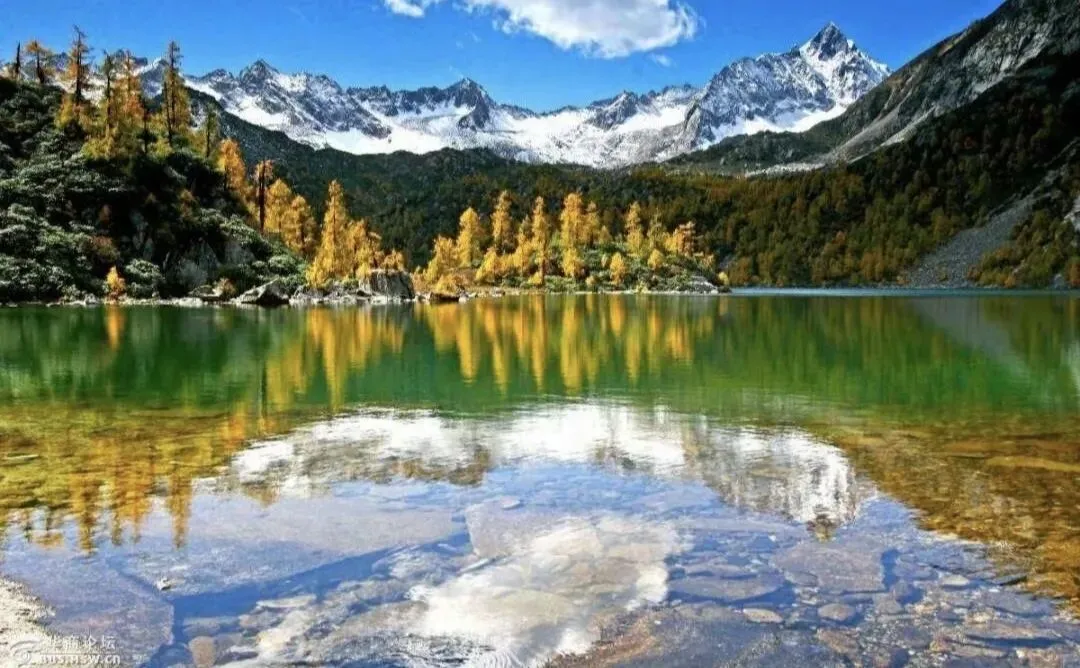 秋季(9月中旬-10月中旬):树叶金黄,湖水湛蓝,雪山洁白,色彩层次最丰富,是摄影黄金期。