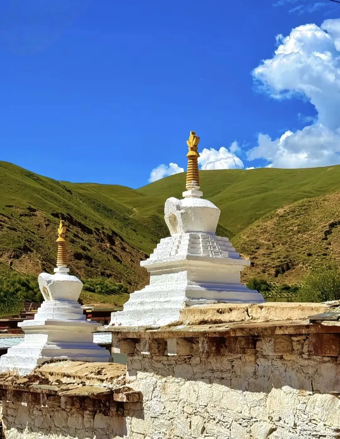 木雅金塔:景区标志性建筑,金塔通体鎏金,在阳光下熠熠生辉,塔身雕刻着精美的藏式图案,是藏传佛教格鲁派的重要寺庙之一,登上金塔观景台,可360°俯瞰草原与雪山全景。