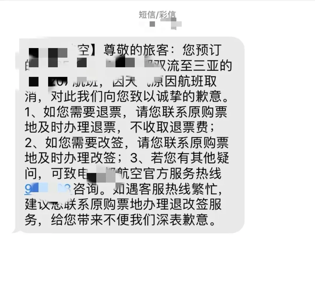 早上5点从九江出发,我们先是包的车坐了2个小时到南昌,然后从南昌又坐了一个大巴到机场,坐大巴车上,突然就收到航空公司发来的短信,说因为三亚那边天气有暴雨,航班就临时取消了。