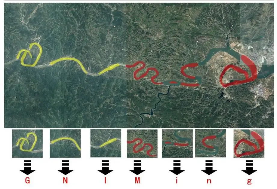 神命谷第七问:五门锁江的M形状像是中文的“命”字,往东看过去是英文的ming,往左看过去也是ming,两端分别有反写的“g”和“G”,这是不是外星人创造的大地艺术,暗示这是一条生命之河、生命起源地,反写的G代表转变命运?