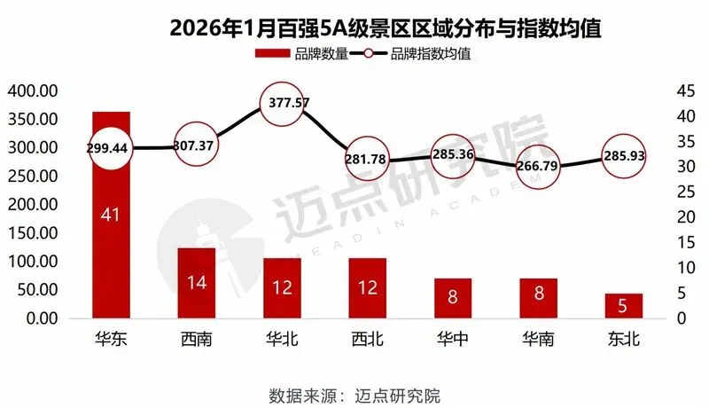 2026年1月,5A级景区百强品牌数量环比变动:华东和东北各增加2家、华南增加1家,西南区域减少3家、华中减少2家。以东北地区为例,1月冰雪旅游迎来热潮,太阳岛景区先后举办“诗与城市的共生之美”第三届太阳岛冰雪诗会、第三届“冰雪之美 育见未来”师生冰版画展示、“冰超”·2026年黑龙江省冰雪徒步大会等系列活动,同时第38届雪博会正在火热进行中,太阳岛景区的冰雪旅游品牌知名度与影响力持续攀升。