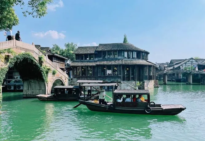 下午四点,坐在茶艺街的临水位置,看着乌篷船慢悠悠划过,再来一碗热腾腾的江南小吃。这种慢下来的感觉,在大城市很难体验到。