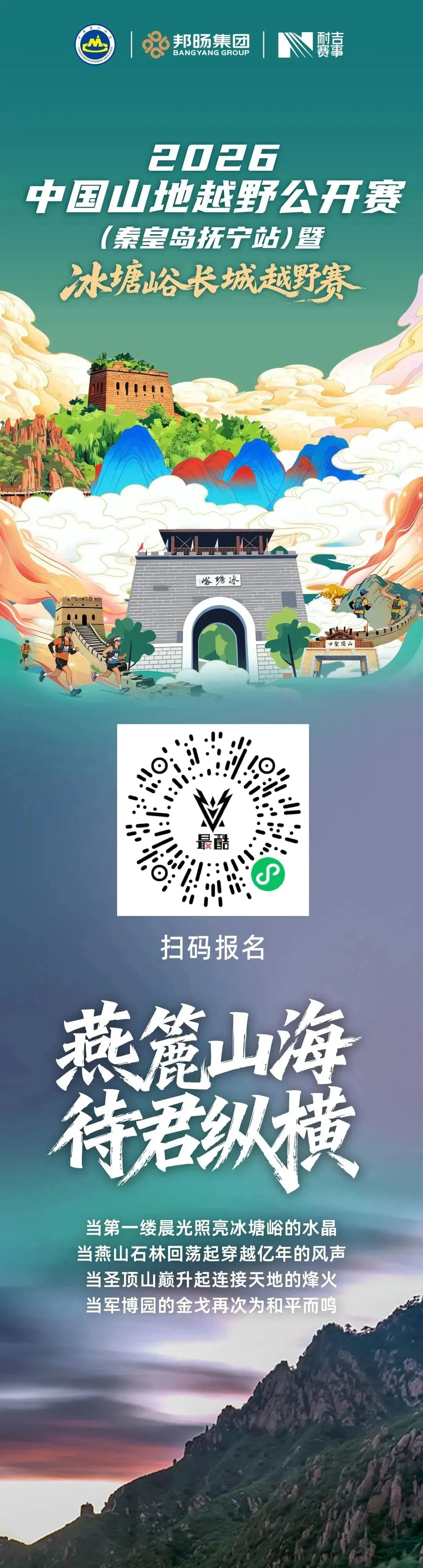 登燕山·越长城·观沧海,华北唯一三重景观越野,山河等你归心!2026年4月,山海需要你的脚步,长城需要你的目光,历史需要你的心跳,应征于此,山河为证,我们相约长城之巅!