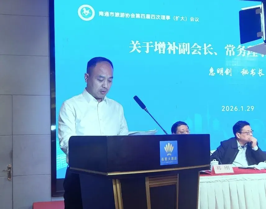 今天,我们齐聚一堂,隆重召开南通市旅游协会第四届四次理事(扩大)会议,传达贯彻市委、市政府工作要求和省旅游协会有关会议精神,共同回顾旅游协会2025年工作,交流经验,鼓励先进,共谋“十五五”开局之年的发展新篇。首先,我谨代表南通市旅游协会,向长期以来关心支持南通文旅事业的各位领导、各界朋友表示衷心的感谢!向奋战在旅游一线的全体同仁致以崇高的敬意!
