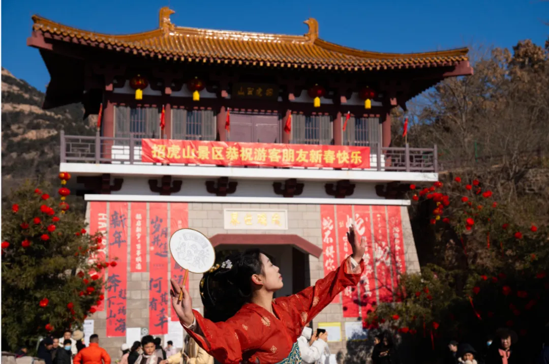大年初一,招虎山景区新春的火红气息扑面而来。南北民俗过大年·苗族风情活动于2月17日盛大开幕·为期6天(演绎时间:正月初一至正月初六),招虎山推出“新春庙会”,庙会活动时间:正月初一至正月十六,海阳大秧歌、爆笑二人转、杂技表演、舞狮表演、鼓舞表演、乐队演出等轮番登场,还有美味小吃,让游客在景区里近距离感受“非遗”文化。