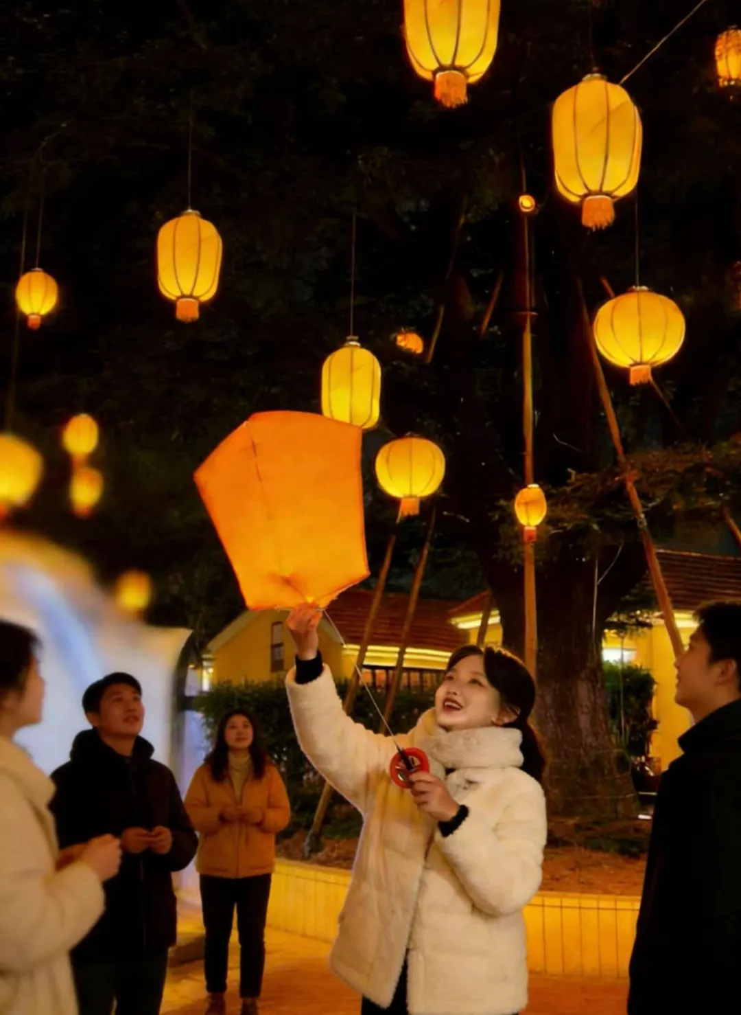 本次活动特别联动岛聚文化空间,在郊野咖啡馆内增设非遗手作体验区,崇明土布、芦苇编织等传统工艺焕新登场,春节期间更有手作+饮品专属套餐,邀你亲手解锁传统韵味。夜幕降临,前卫1966的温柔夜色里,环保电子孔明灯承载心愿缓缓升起;知青酒吧内,铺纸研墨、书写春联福字,把亲手寄托的美好祝福带回家,让这个新年更有仪式感。
