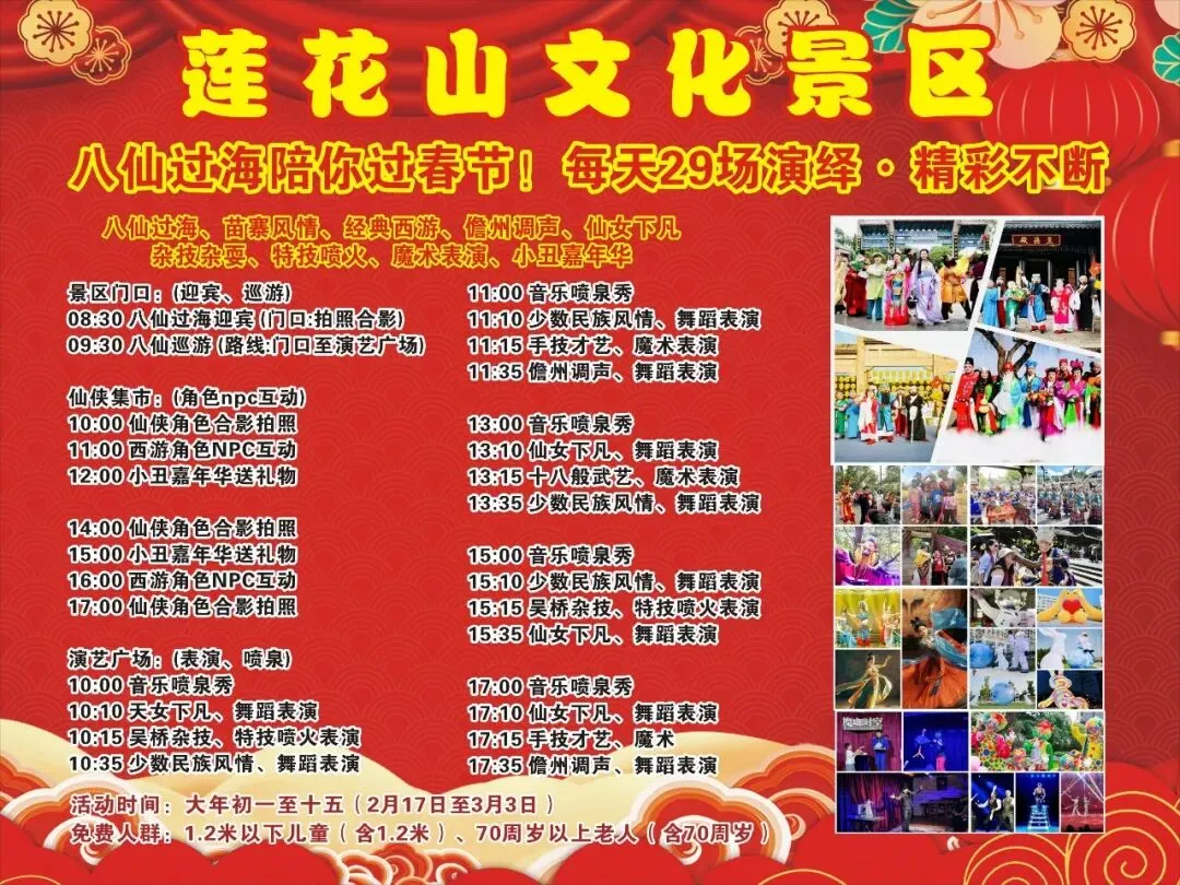 2026年春节将至,一场融合传统与现代的仙侠奇境嘉年华即将在“海南莲花山文化景区”拉开帷幕!我们以“仙侠奇境,八仙过海陪你过春节”为主线,精心打造六大沉浸式主题板块,带您领略从传统神话到民族风情,从古典舞蹈到现代互动的多元体验。别走开!!继续往下看,小编带您抢先看活动亮点!