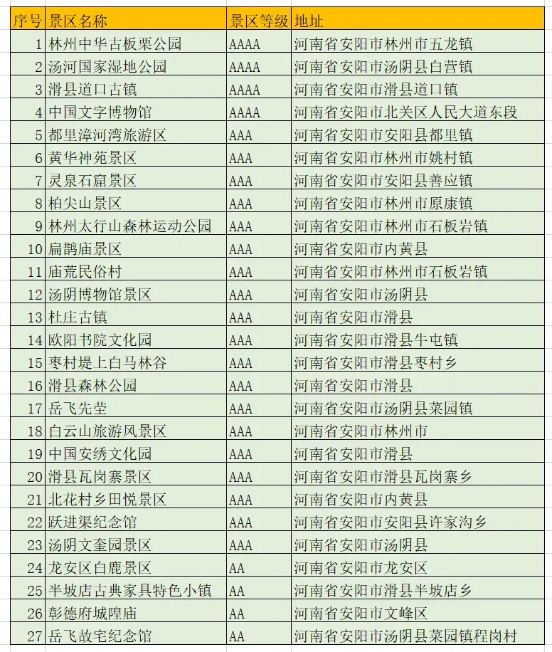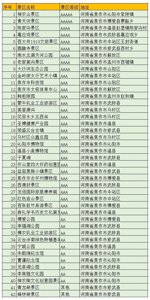 具体包括:长治市八路军太行纪念馆、漳泽湖国家城市湿地公园、丹泉小镇等29家景区;晋城市太行山王莽岭景区、天官王府景区、炎帝陵景区等47家景区;聊城市山东景阳冈酒文化旅游景区等39家景区;济源市王屋山景区等7家景区;焦作市青天河景区等42家景区;安阳市滑县道口古镇等27家景区。