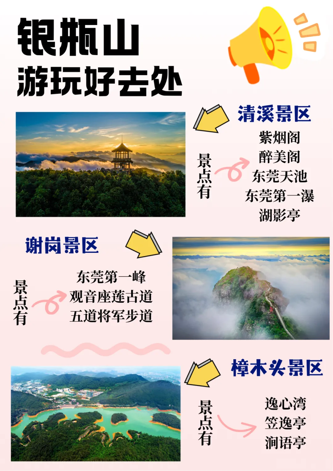 公交:银瓶山节假日专线(银瓶站→谢岗景区立体停车场),7:00-18:00运营,约1小时一班。