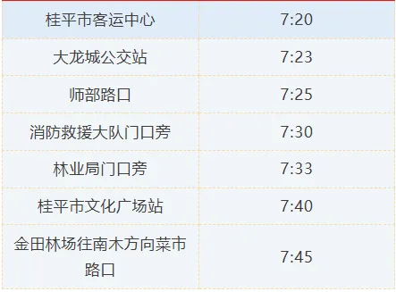 广西龙潭国家森林公园大巴车上落点站点及时间(往桂平市文化广场方向)
