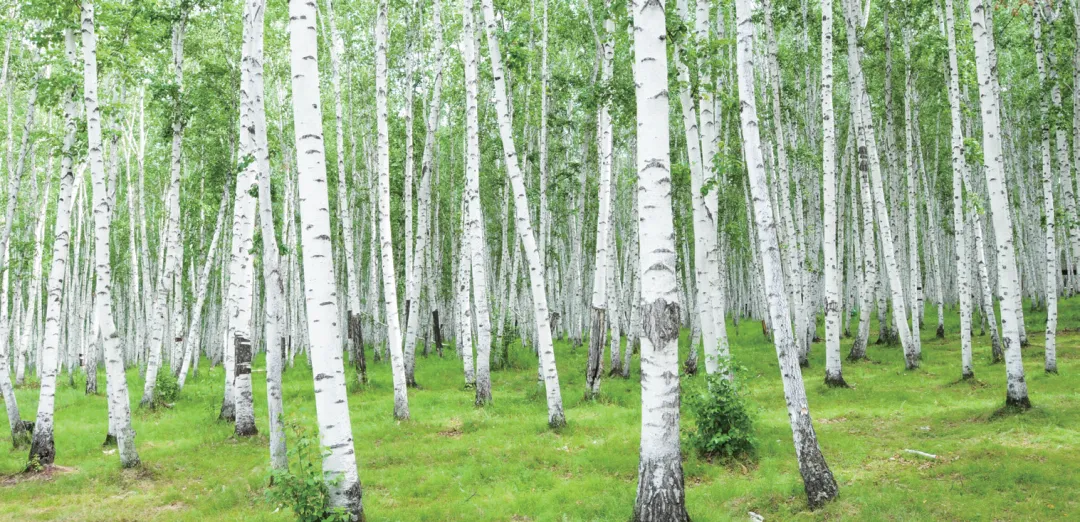白桦别名桦树、桦木、桦皮树等,有“林中美少女”之称。白桦为落叶乔木,高可达25米,直径可达50厘米,树皮呈白色纸状分层剥离。白桦树喜光,耐严寒,对土壤适应性强,在沼泽地、干燥阳坡或湿润阴坡均可生长。常与红松、落叶松、山杨等混交成林,也可形成纯白桦林。其木材质地致密,可用于制作器具;桦树皮亦是制作特色容器和手工艺品的绝佳材料。