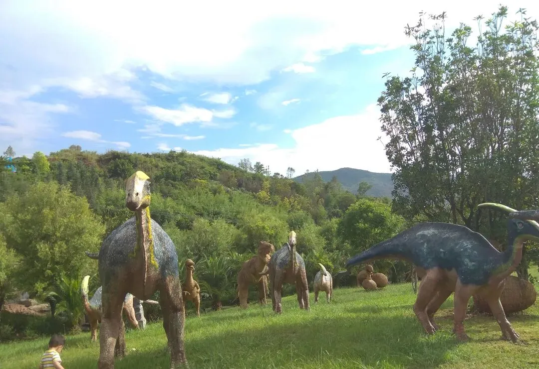 昆明出来第一站:楚雄州,最早听说这里是历史书本上的元谋人,第一次来则是因为这里禄丰市的恐龙谷。高速路专门有一个服务站和出口,就在景点旁边。从昆明到禄丰,车程应该在一个小时左右。 禄丰以恐龙发掘地为主题建造的公园,四处分布着一些大小不一的恐龙塑像,高的有十来米。往里走有一个恐龙挖掘现场的室内展厅,保存一些恐龙化石和影像资料。公园面积不小,前几年去的时候还有免费的空中滑索道,只是人多的时候需要等待。如果家里有小朋友的,可以带着来这里逛逛,绝对可以让小朋友体验下恐龙世界。图片是好几年前的,不知道这些年有没有其他变化。
