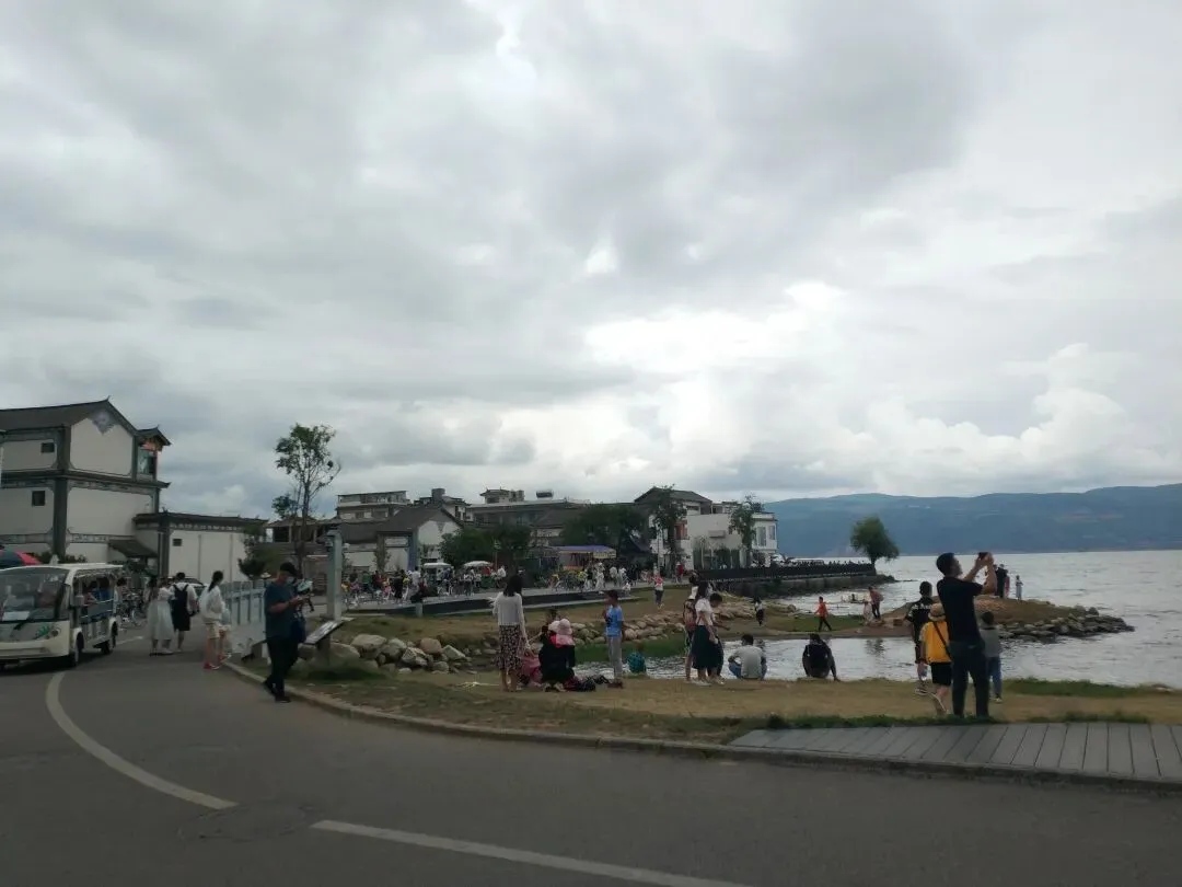 尝完喜洲粑粑后,可以去蝴蝶泉看蝴蝶和泉,我们没有去,毕竟时间有点紧张。沿湖继续开车向前,到达双廊古镇。双廊和喜洲看点不一样,很多人不去喜洲也要去双廊。双廊的长街感觉更加有古镇的气息,一条很长的街道,路边行人闲逛,街道人流不稠不稀刚刚好。走累了,往右边巷子一穿,很快就能看到湖光山色的洱海。看累了,顺着巷子回来,找一家小饭店,点一些美食品尝,然后再逛一下街道。
