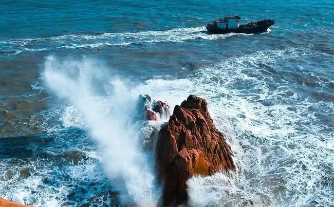 海上的三个小岛——火烧岛、棺材山、跳尾屿,把渔井湾与渔井——嵛山水道分开湾内,海水微澜,小波不惊,湾外,惊涛拍岸,大浪滔天。