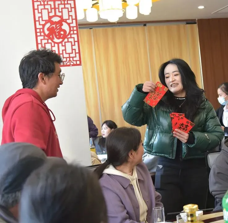 表彰环节结束后,和董向全体员工发放过节费,感谢大家一年的辛勤劳动,并送上温暖的新春祝福。上午的会议在掌声中圆满落幕。