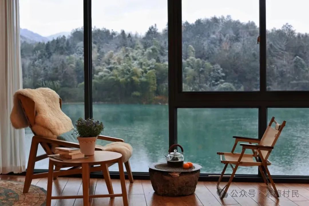 “在水一方”是B站和小红书里的高频词,那环境太美了,面水而居,水后有山,雨天是水墨画,晴天是桃花源。见到湖水的一刹那,我理解了一个颜色,晴水绿。主人王先生是个略显拘谨的中年男人,身材匀称,言语得当,牙齿特别白。陈老师说,王先生是个现代生活家,懂园艺、懂艺术、懂科技,会赚钱、会做饭、会社交,在水一方就是他的生活态度和他对生活的演绎。
