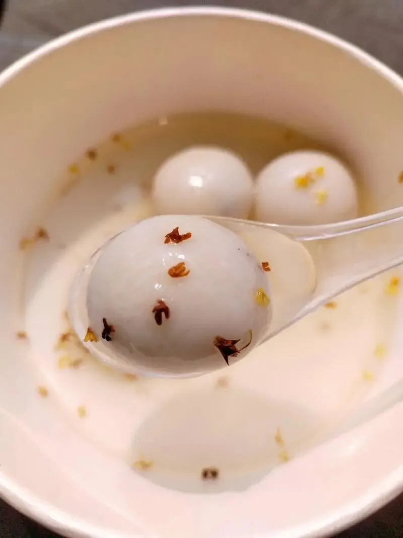 宁波汤团软糯,黑芝麻糊得香,娃一口一个,别让他烫着。