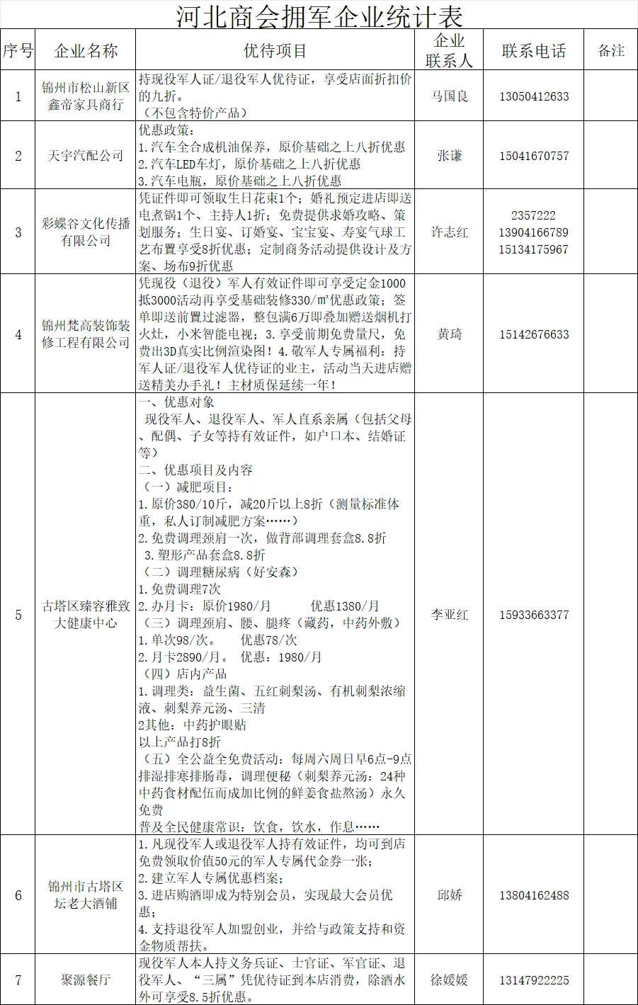 近日 河北商会推出拥军企业 覆盖家居装修、健康管理 汽车保养、餐饮 文旅等领域 具体优待清单 👇👇👇