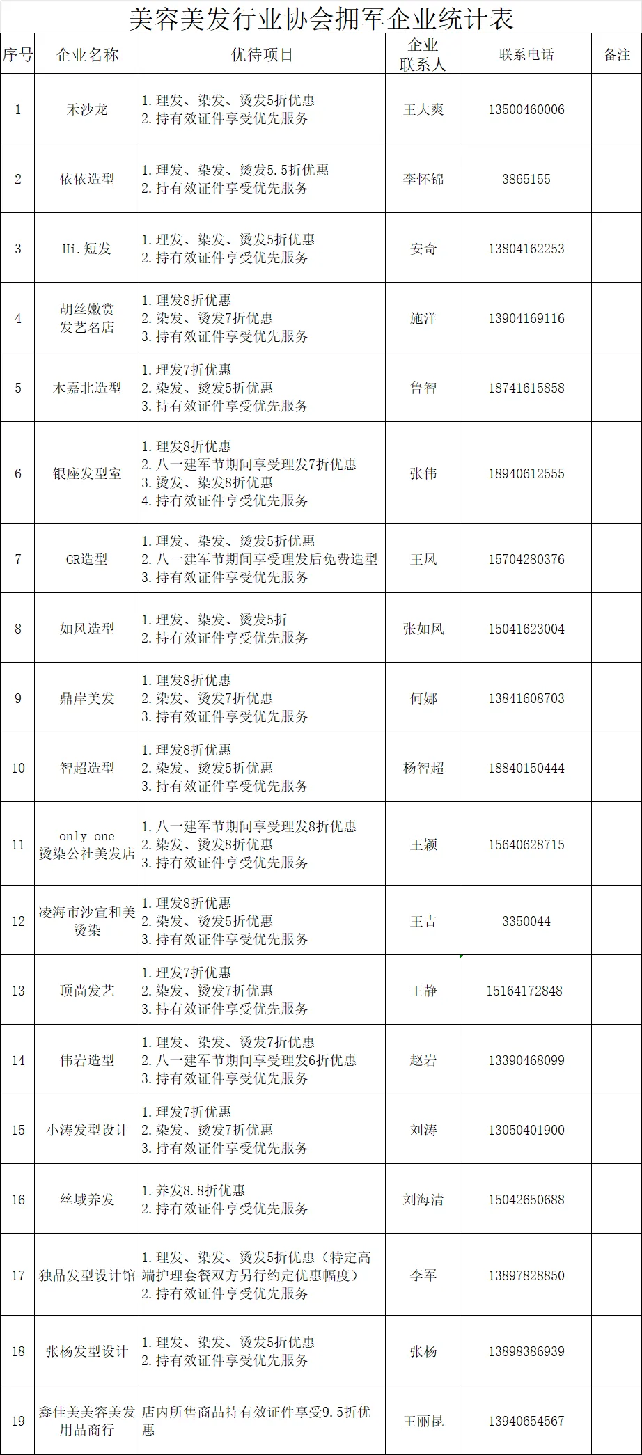 不仅吃住行享优惠 理发、烫染发也可持证 享折扣、优先服务啦 具体优待清单 👇👇👇
