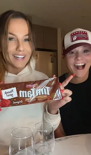 视频中,Nat还第一次尝试了“Tim Tam slam”——用Tim Tam饼干当吸管吸牛奶,然后一口吃掉。 她边吃边说:“我太爱这个吃法了,这是我在澳洲吃过最棒的东西,给一百万分!”