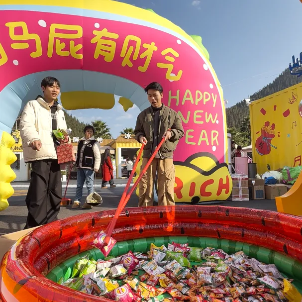 立水瓶翻红包、巨型筷子夹礼