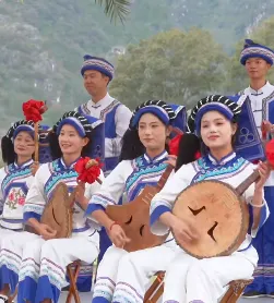 昼:福娃、花仙子伴民族服饰游客同游,“驿站笙歌”乐队互动点唱春日团圆旅行曲。
