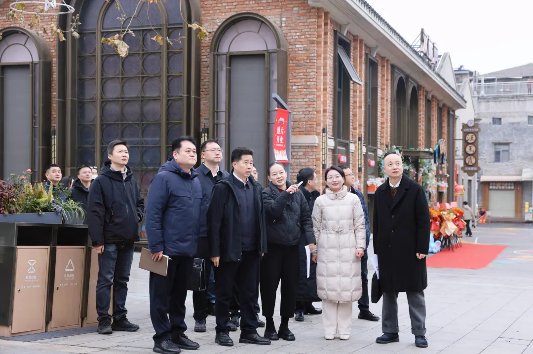 在斗级营街区,范礼奎一行来到汉阳门花园景观平台,详细了解平台改造方案,随后沿街区步行,实地查看街区沿线春节布置情况。在鱼灯打卡区,范礼奎驻足了解鱼灯非遗技艺,细致察看街区整体陈设、主题墙绘及各类街景打卡点位,询问街区运营及节日活动筹备情况。