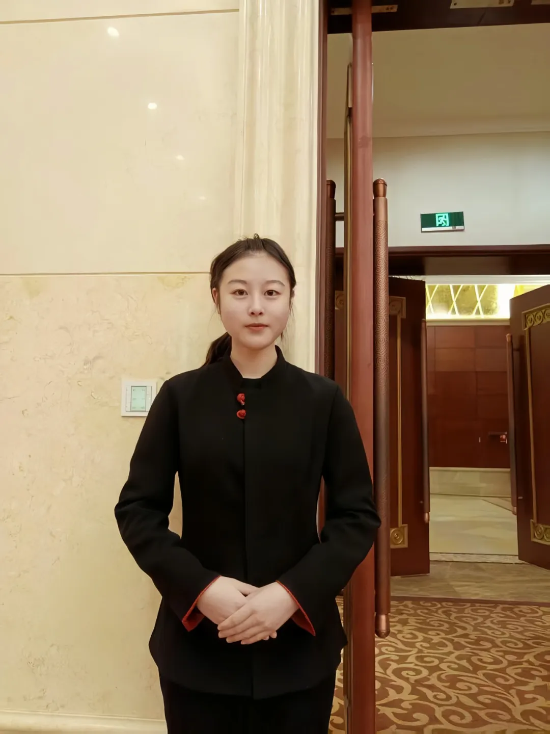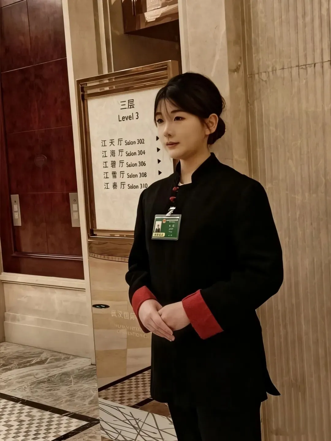 作为酒学院学生,我有幸参与武汉洲际酒店两会期间的服务工作,任职V厅引导服务岗。会前我会提前做好会场准备工作,按照会务标准规范摆放茶杯,保证杯具整齐划一、位置精准,为宾客营造整洁有序的会议环境。工作中,我始终以标准站姿坚守岗位,主动微笑问候每一位参会宾客,暖心的回应也让我倍感温暖。我的核心工作是为宾客提供精准路线指引,针对会议室咨询,以规范手势引导、清晰讲解路线,助力宾客高效抵达。两会服务标准严苛,我时刻恪守专业服务素养,耐心解答疑问,以细致周到的引导保障会务顺利开展。此次实践让我实现了专业知识与实操的深度融合,也深刻体会到高端酒店服务中,细节与用心便是服务的核心要义。