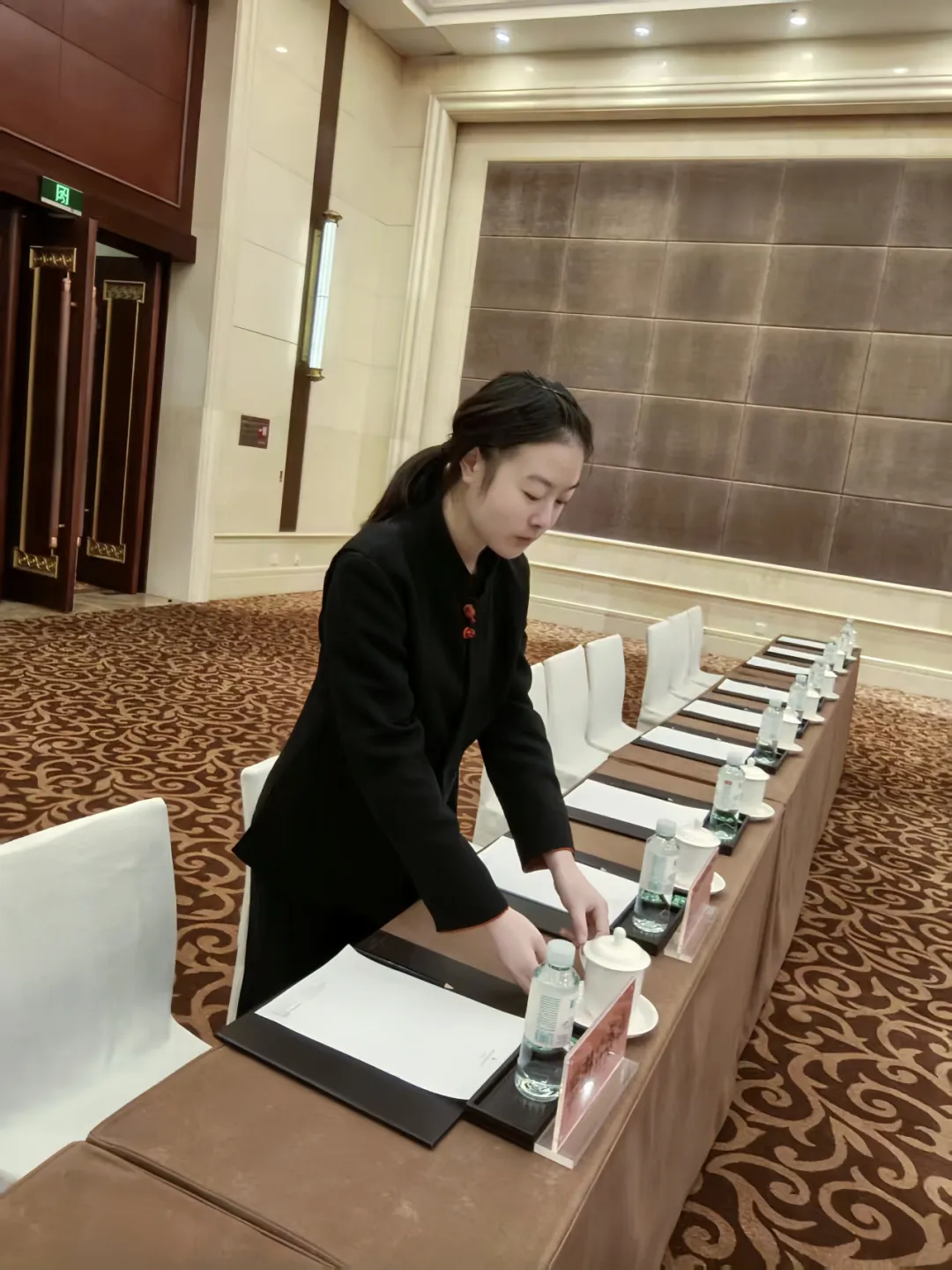 一场会议能够顺利进行,背后是无数细节的反复打磨。我亲身体验到,大到会议前的物料准备、人员就位,小到桌上台布不能有一丝折痕、桌下台布必须叠得方正整齐,乃至用拉线精准对齐每一把椅子与名卡,这一切都需要极大的耐心与专注。会议结束后,所有流程又要重新来过,为下一场做好准备。这让我深刻感受到,服务行业不仅是体力与耐心的付出,更是一份沉甸甸的责任,需要无声的细致与持续的严谨。