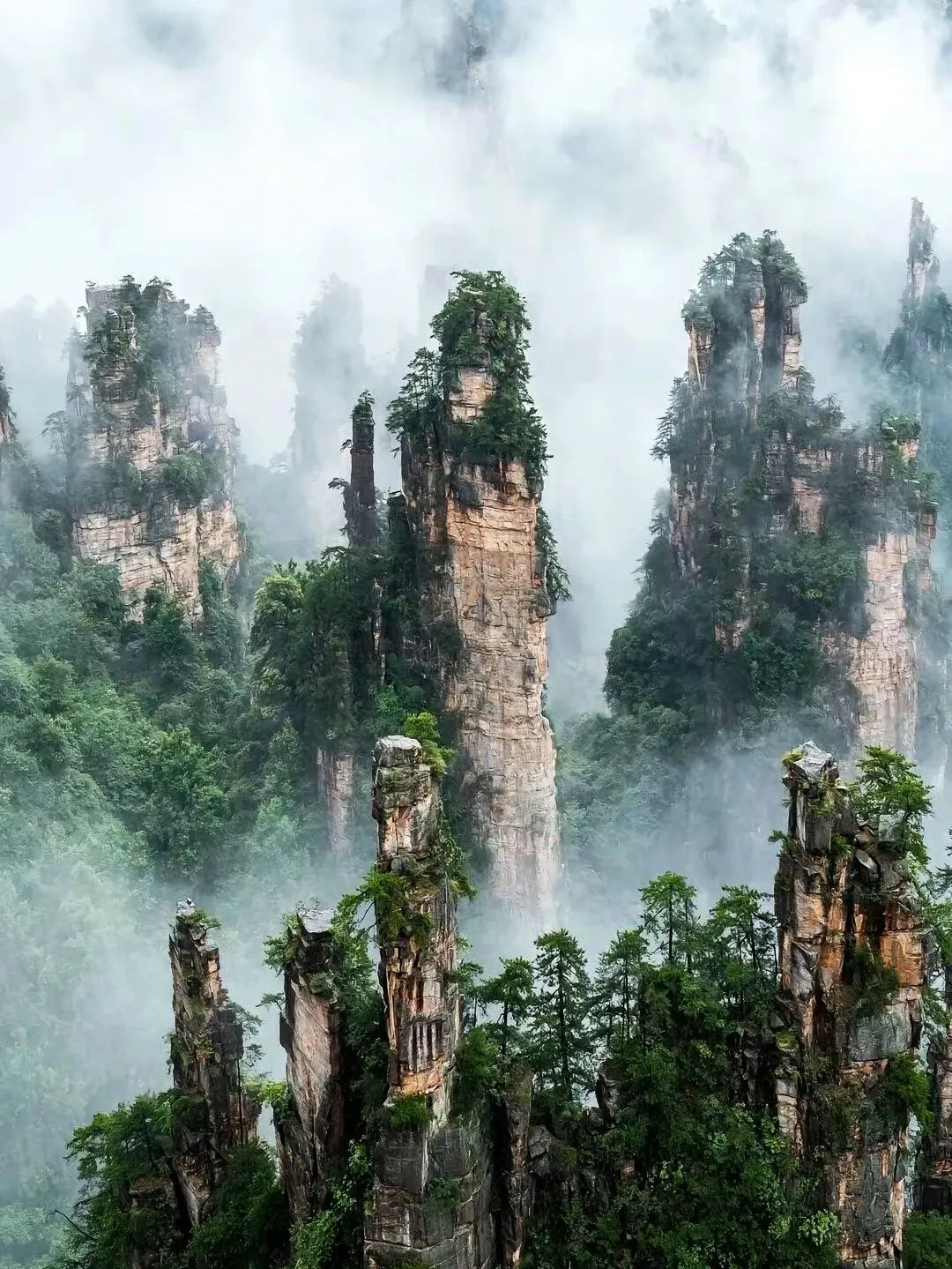 黄山是我心目中最美的山,有“黄山归来不看岳”的美誉,作为一名喜欢登山的旅行者,我曾经6次去过黄山,而假如要寻找一座能和黄山一比高下的景区,我觉得非张家界森林公园莫属,因为这座山很有特色,它不同于黄山的雄奇大气和秀美绝伦,却别具一格,有个专业名称叫“石英砂岩峰林”,在方圆两百多平方公里的景区,竟然有奇峰3103座,真正的“奇峰三千”!