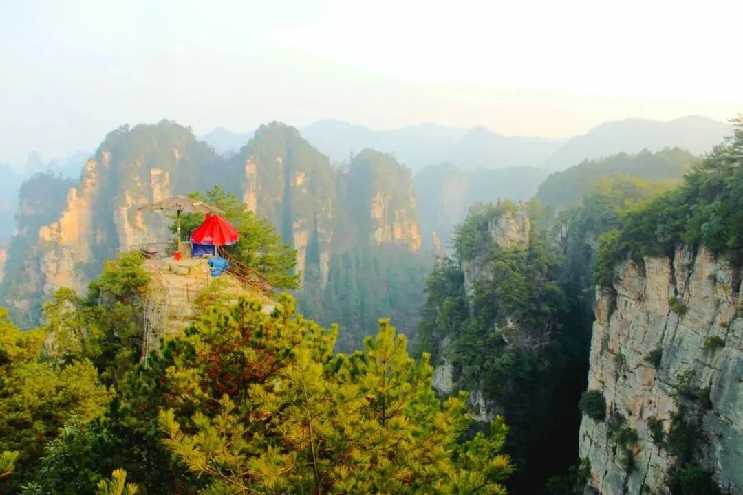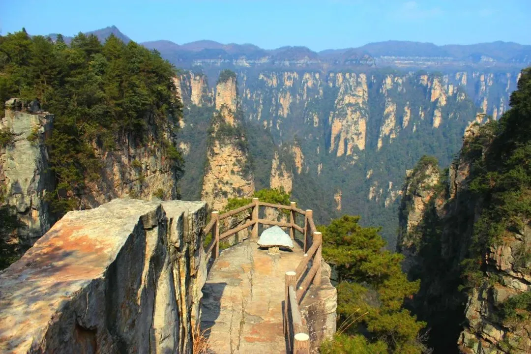 D2 天子山门票站→杨家界乌龙寨天波府→杨家界空中走廊→大观台→天子山贺龙公园/御笔峰→天子山索道→武陵源镇