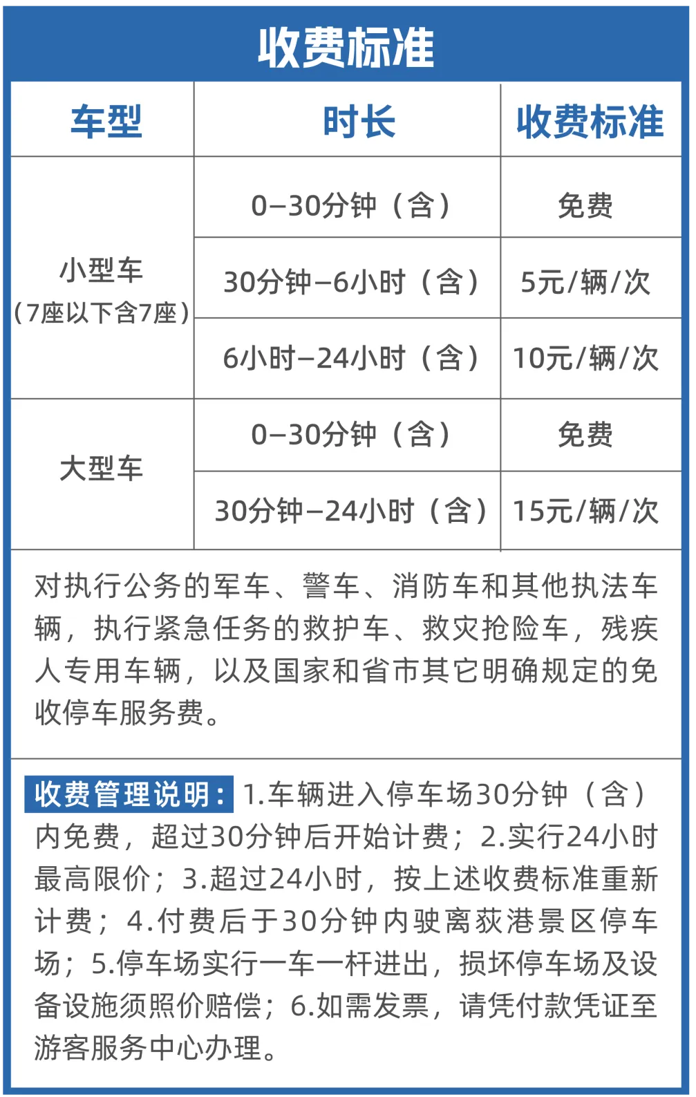 荻港景区停车收费管理公告
