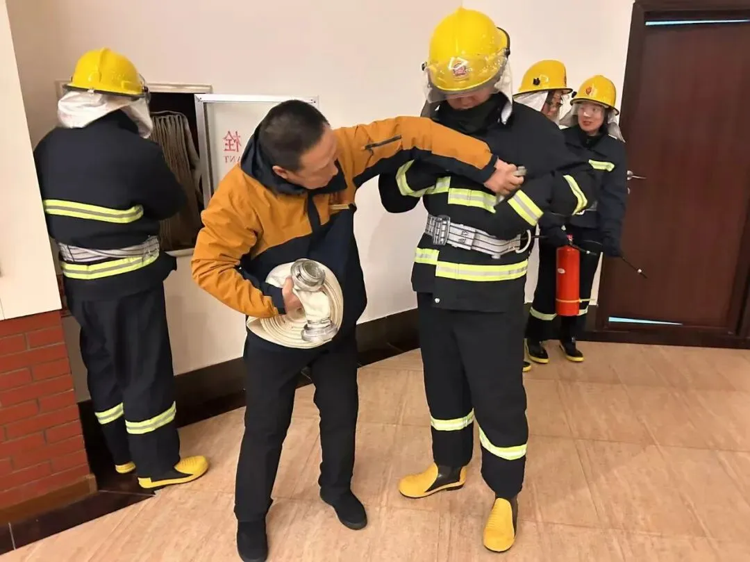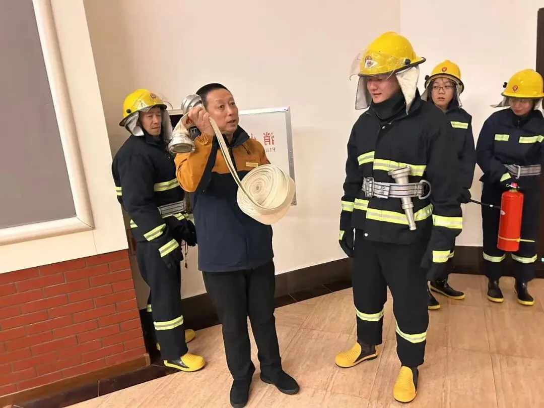 消防培训环节,安全生产部负责人结合艺术馆展品密集、电路复杂的特点,采用“理论讲解+实操演示”的模式,详细讲解了火灾高发隐患点、初期火灾扑救技巧及消防器材的正确使用方法,并对消防栓的开启、水带连接、灭火防护服的穿着顺序等实操步骤,逐一指导练习,及时纠正操作误区,确保每位参训人员都能熟练掌握消防技能,真正做到“会用、善用”消防器材,从源头上防范火灾风险。