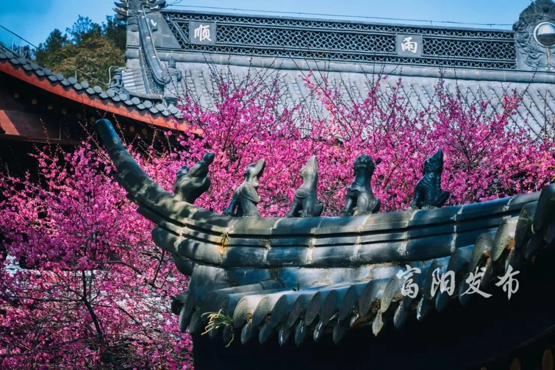 眼下正是梅花盛花怒放的时节,富阳街头巷尾的梅花也竞相开放,东吴文化公园、东山延寿禅寺、阳陂湖、江景二期江滨公园等地都是赏梅好去处。