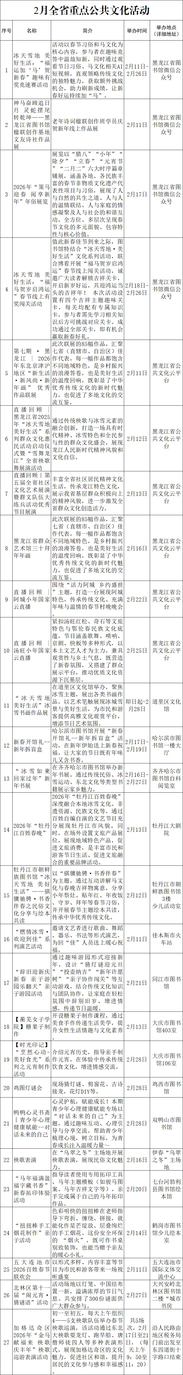 您现在的位置是:首页 > 国内旅游目的推荐 > 正文 国内旅游目的推荐 旅游迎春,休闲过年 | 来龙江过大年 赴一场文化的冰雪之约 admin2026年02月11日 16:12:15国内旅游目的推荐9 旅游迎春,休闲过年 | 来龙江过大年 赴一场文化的冰雪之约来龙江过大年这个2月黑龙江冰雪正燃,年味正浓!如果你想过一个不一样的中国年那就一定要来黑龙江在这里,你不仅能赏冰乐雪感受北国风光的壮美更能沉浸在一系列精心策划的春节文化活动中体验地道、热闹、深厚的人文魅力这个二月欢迎你来黑龙江在冰雪舞台中邂逅文化盛宴在热闹活动中感受浓郁年味在欢笑团聚中迎接新春图源:黑龙江省群众艺术馆、阅美连池往期精选来龙江过大年 博物馆里迎新春黑龙江推出“来龙江过大年”新春文旅商体系列活动来龙江过大年 冰雪舞台好运连连 转载请说明来源于"旅荐网",部分内容转载自网络,如有侵权请联系qlwl@foxmail.com删除 本文地址:https://www.15386.cn/post/101827.html 上一篇 临时闭园!邯郸3景区最新通知! 下一篇 刘三姐故里景区. 相关文章 #江西灵山旅游攻略 #自然风光摄影 #灵山石 重庆四天三晚(3月版)|人均1K+游玩攻略 不负春光!请收下这份清明踏青出游指南 免签9国!护照在手,说走就走!懒人版旅行攻略大公开 旅行攻略:香港漫游全攻略 扬州旅游攻略|必打卡的景点+美食+小吃 旅行攻略 | 悉尼三天两夜City Walk,暴走2万步整理出来的攻略,请直接抄作业!(下) 免费!适合3-4月旅游的四个古镇(附攻略) 周末宏村+黄山旅游攻略 本周旅游评价报告出炉!差评率最高的竟是黄果树大瀑布? 发表评论 取消回复 评论列表 这篇文章还没有收到评论,赶紧来抢沙发吧~