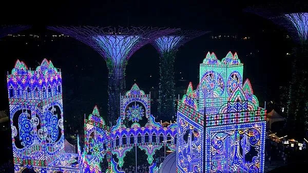 这里的超级树群是狮城最具科幻感的地标,白天看绿植缠绕的巨型“树干”,感受都市森林的治愈;每晚7:45和8:45各有一场免费灯光秀,灯光与音乐交织,超级树瞬间变身霓虹森林,躺在草坪上仰望,氛围感直接拉满。另外,云雾林外围和花穹外景也能免费打卡,随手一拍都是大片。